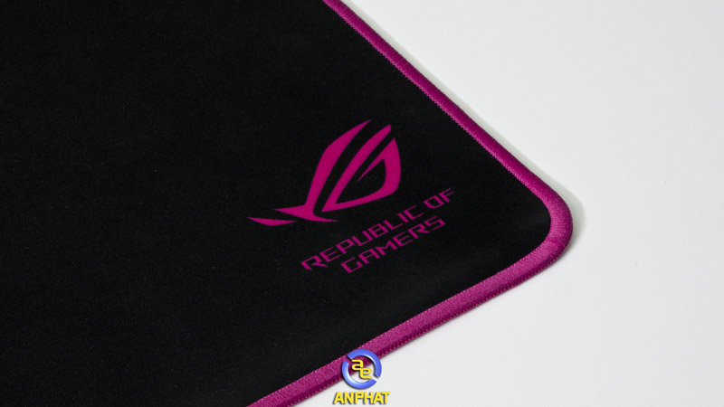 Toàn bộ bề mặt bàn di chơi game Asus này được làm bằng vài mềm dạng mịn và nó được chia thành 2 khu vực. Khu vực bên trái màu hồng với các dòng ROG sáng hơn. Còn khu vực bên phải màu đen rộng hơn sẽ được sử dụng cho phạm vi gaming mouse.